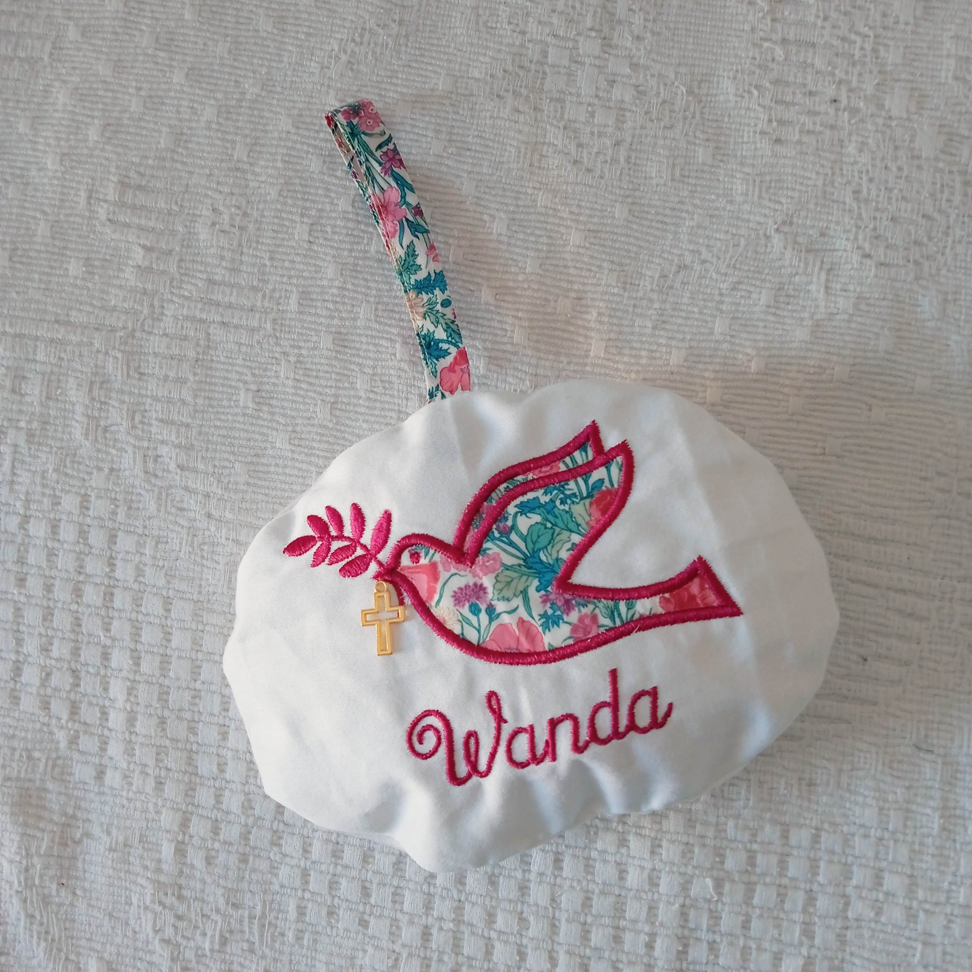 exemples de confections personnalisées avec broderie du prénom WANDA