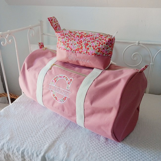 Prénom avec majuscule en appliqué de tissu : la première lettre est réalisée dans le tissu de votre choix pour un effet couture tout en douceur.