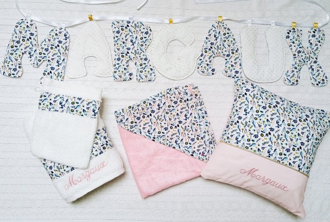 exemples de confections personnalisées avec broderie du prénom MARGAUX