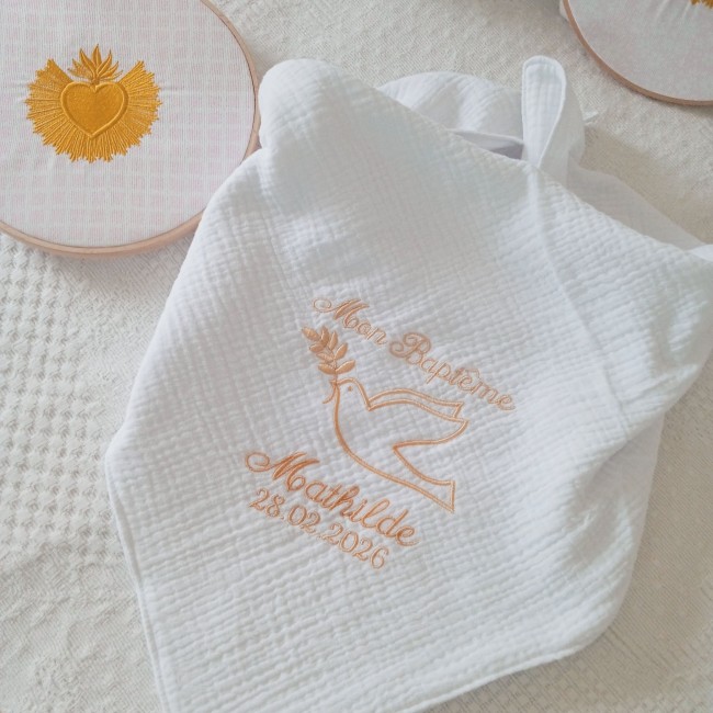 Je crée pour vous des articles personnalisés avec broderie du prénom, entièrement réalisés à la demande, pour offrir un cadeau unique et rempli de tendresse.