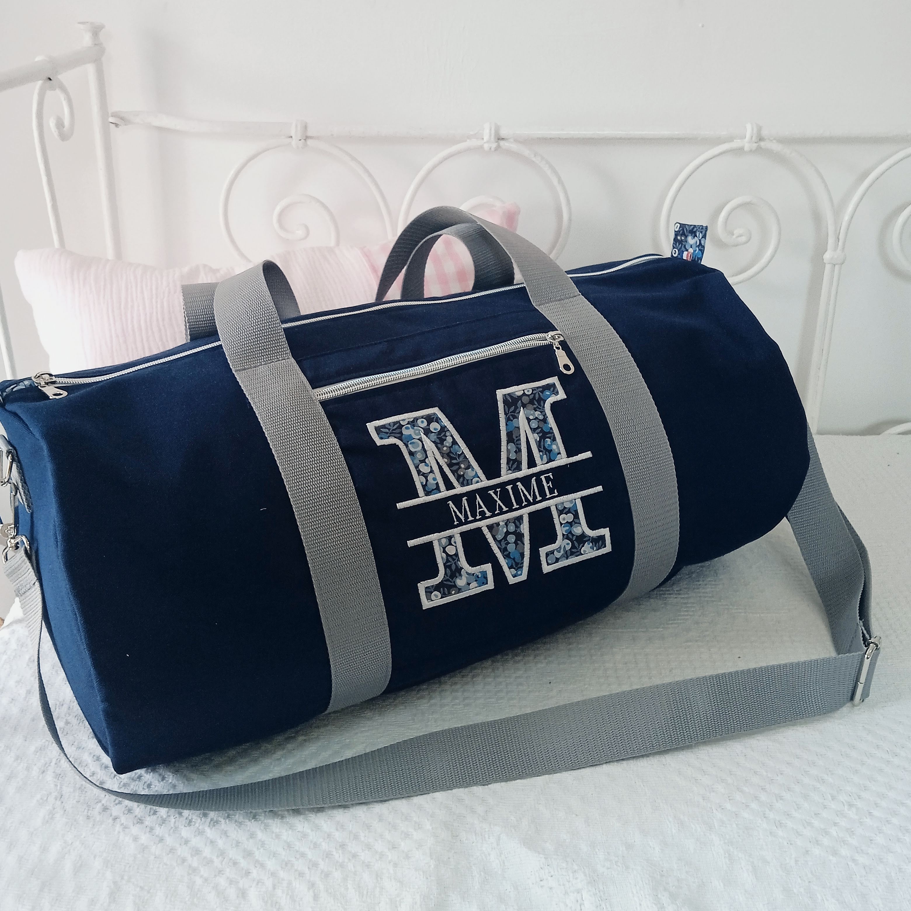 Prénom avec majuscule en appliqué de tissu : la première lettre est réalisée dans le tissu de votre choix pour un effet couture tout en douceur.
