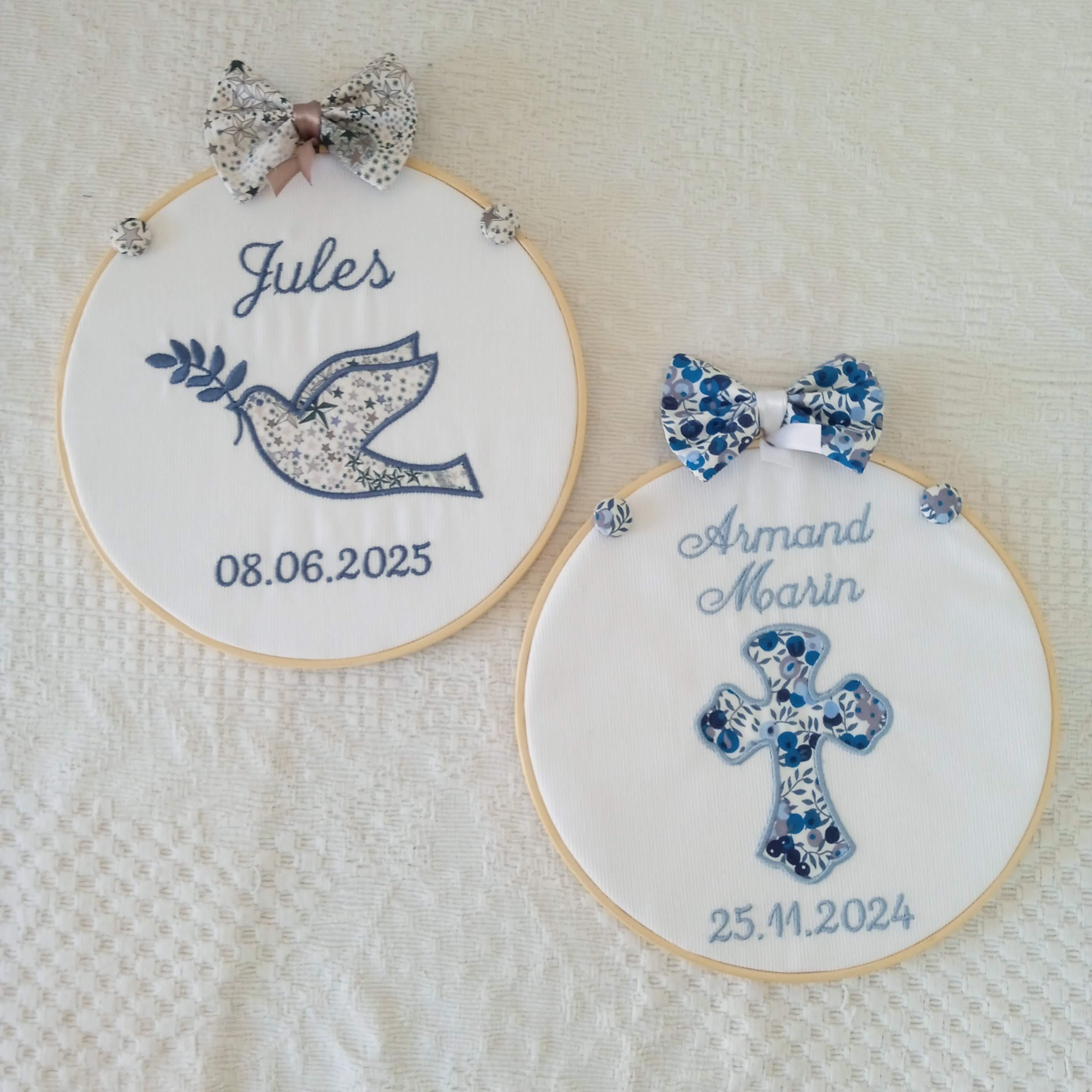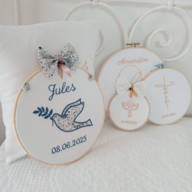 Chaque pièce est confectionnée par mes soins, dans mon atelier, spécialement pour vous, afin de transformer un simple article en souvenir précieux et personnalisé.
