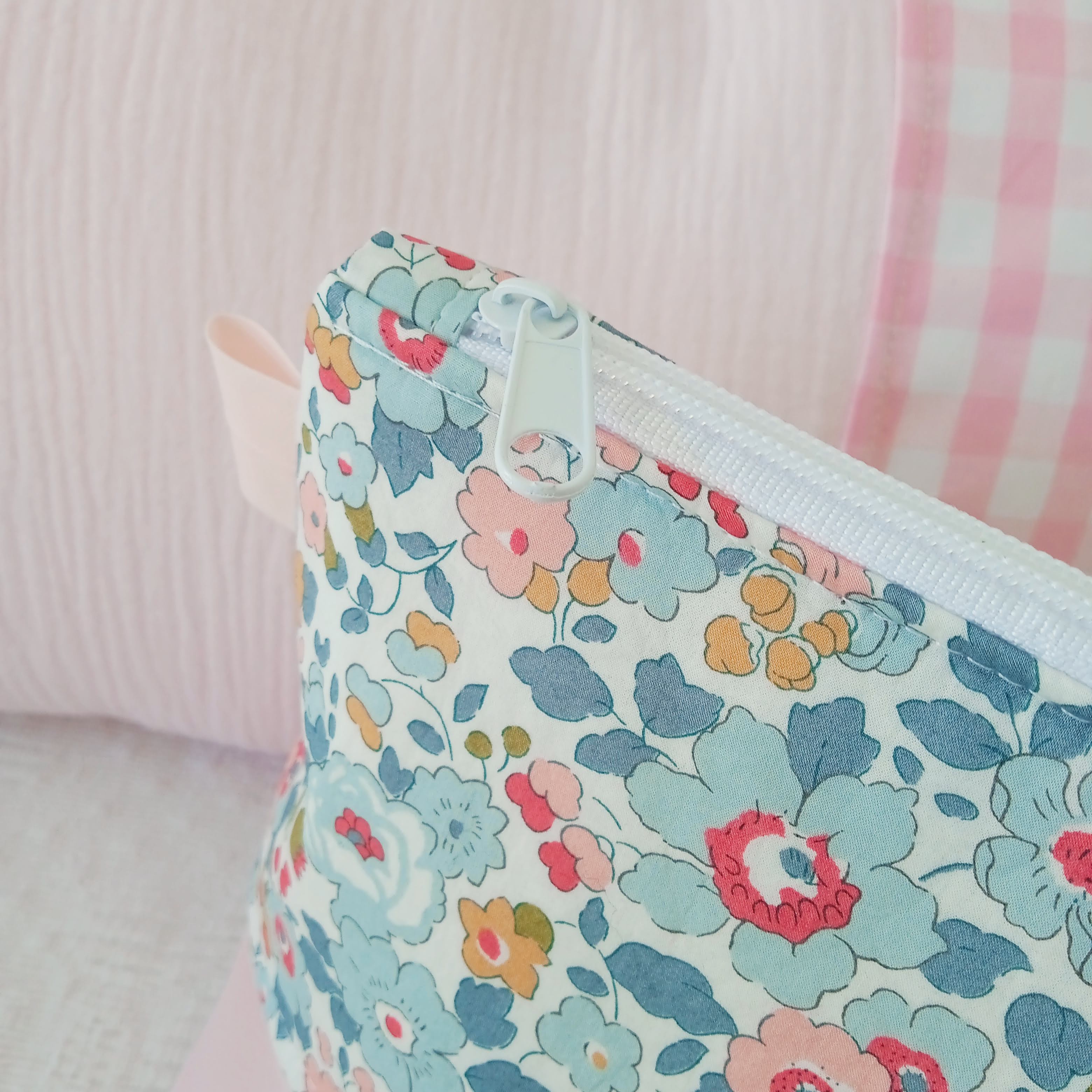 Prénom avec majuscule en appliqué de tissu : la première lettre est réalisée dans le tissu de votre choix pour un effet couture tout en douceur.