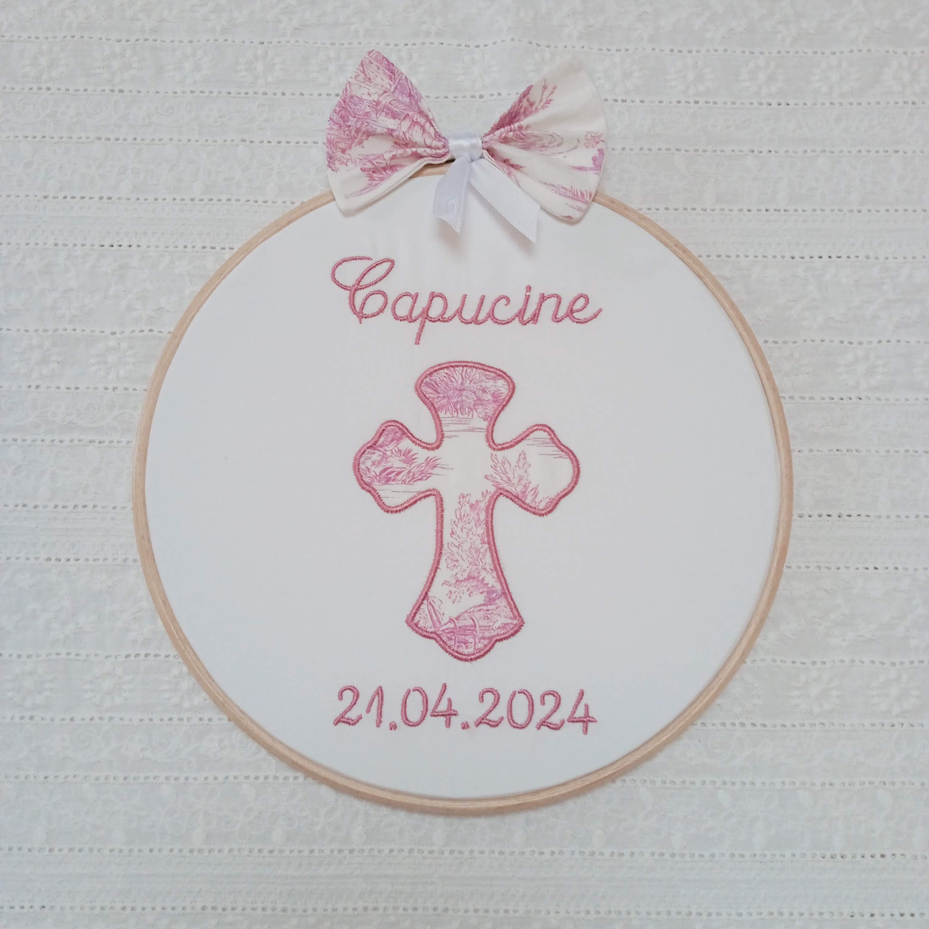exemples de confections personnalisées avec broderie du prénom CAPUCINE