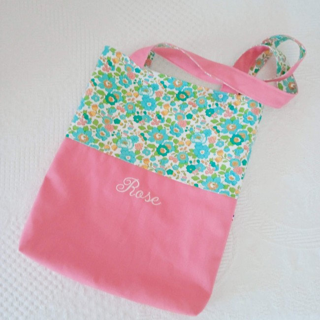Prénom avec majuscule en appliqué de tissu : la première lettre est réalisée dans le tissu de votre choix pour un effet couture tout en douceur.