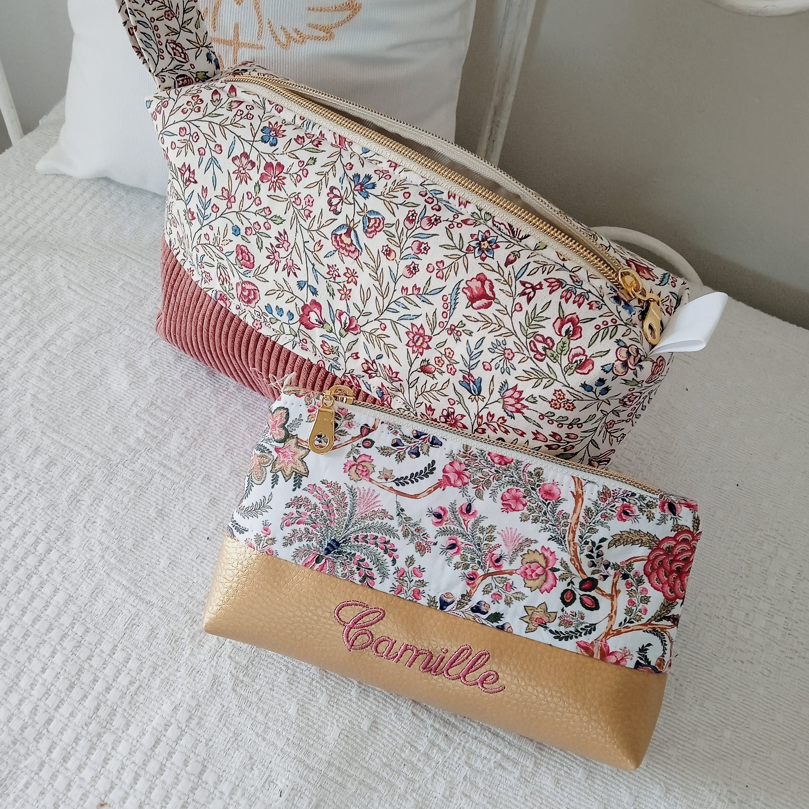 exemples de confections personnalisées avec broderie du prénom CAMILLE