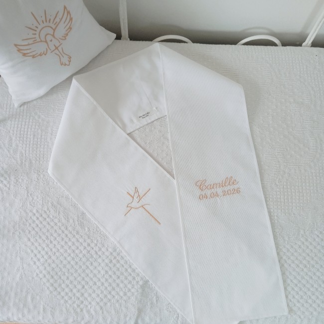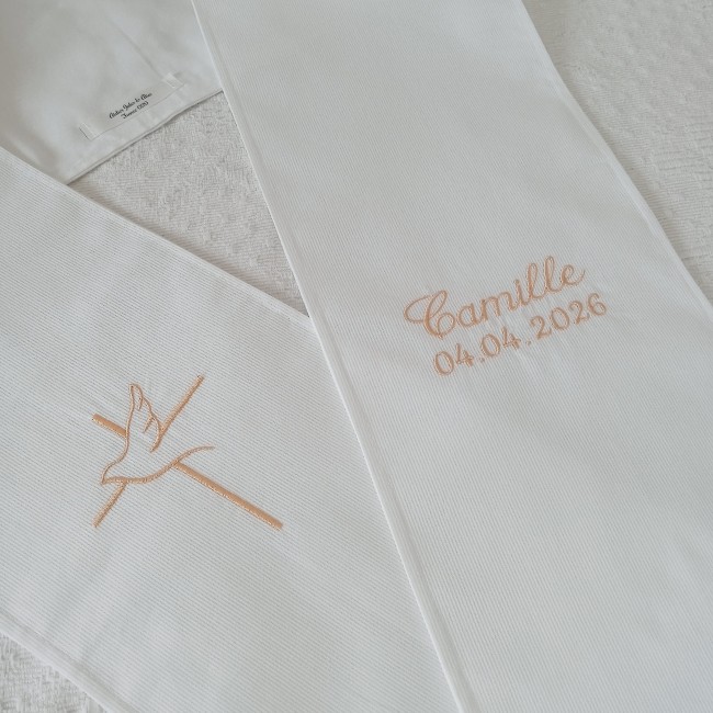 Chaque prénom raconte une histoire. Je prends soin de la mettre en valeur à travers une broderie soignée et harmonieuse.