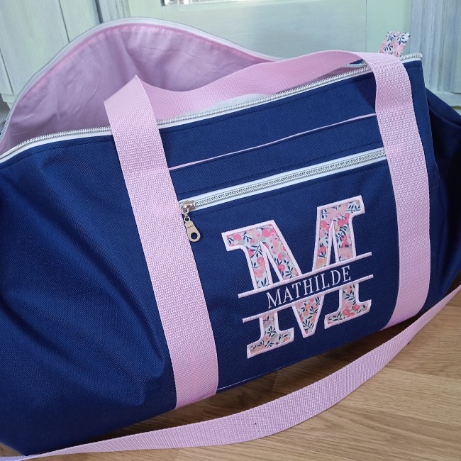 Prénom avec majuscule en appliqué de tissu : la première lettre est réalisée dans le tissu de votre choix pour un effet couture tout en douceur.
