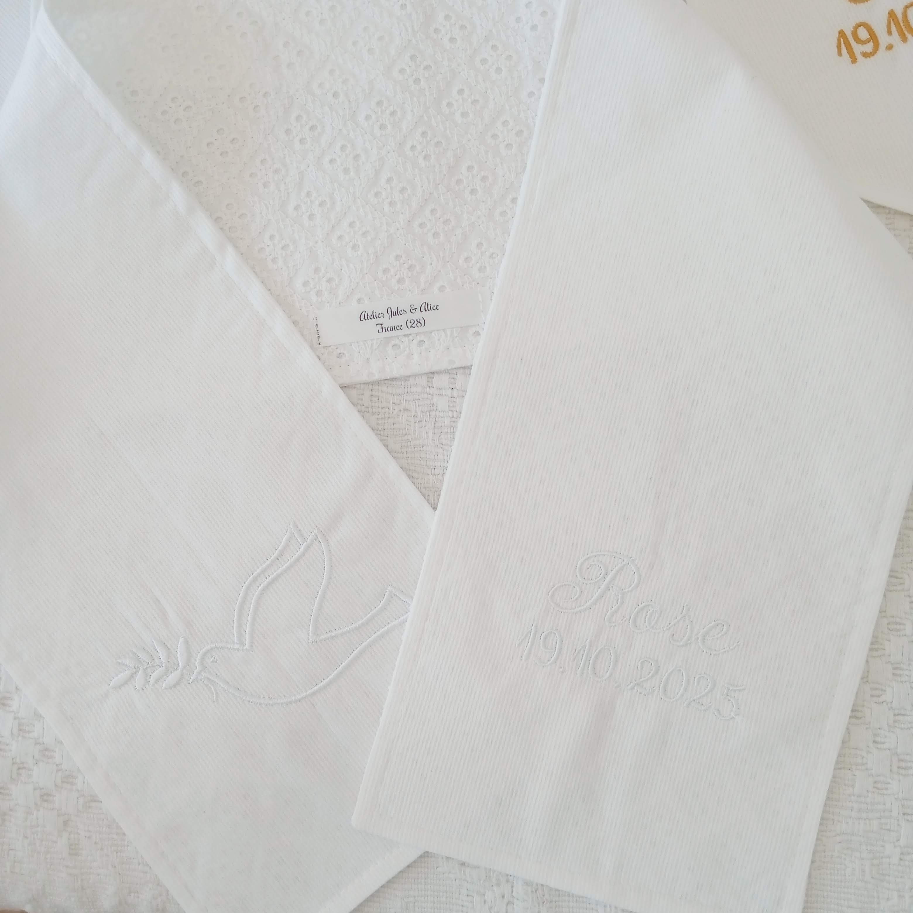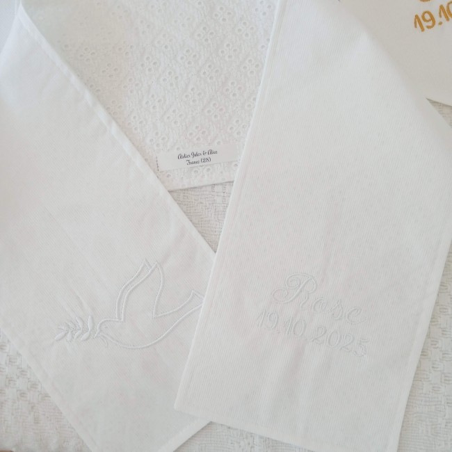 Je crée pour vous des articles personnalisés avec broderie du prénom, entièrement réalisés à la demande, pour offrir un cadeau unique et rempli de tendresse.