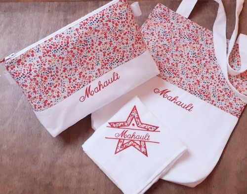 exemples de confections personnalisées avec broderie du prénom MAHAULT
