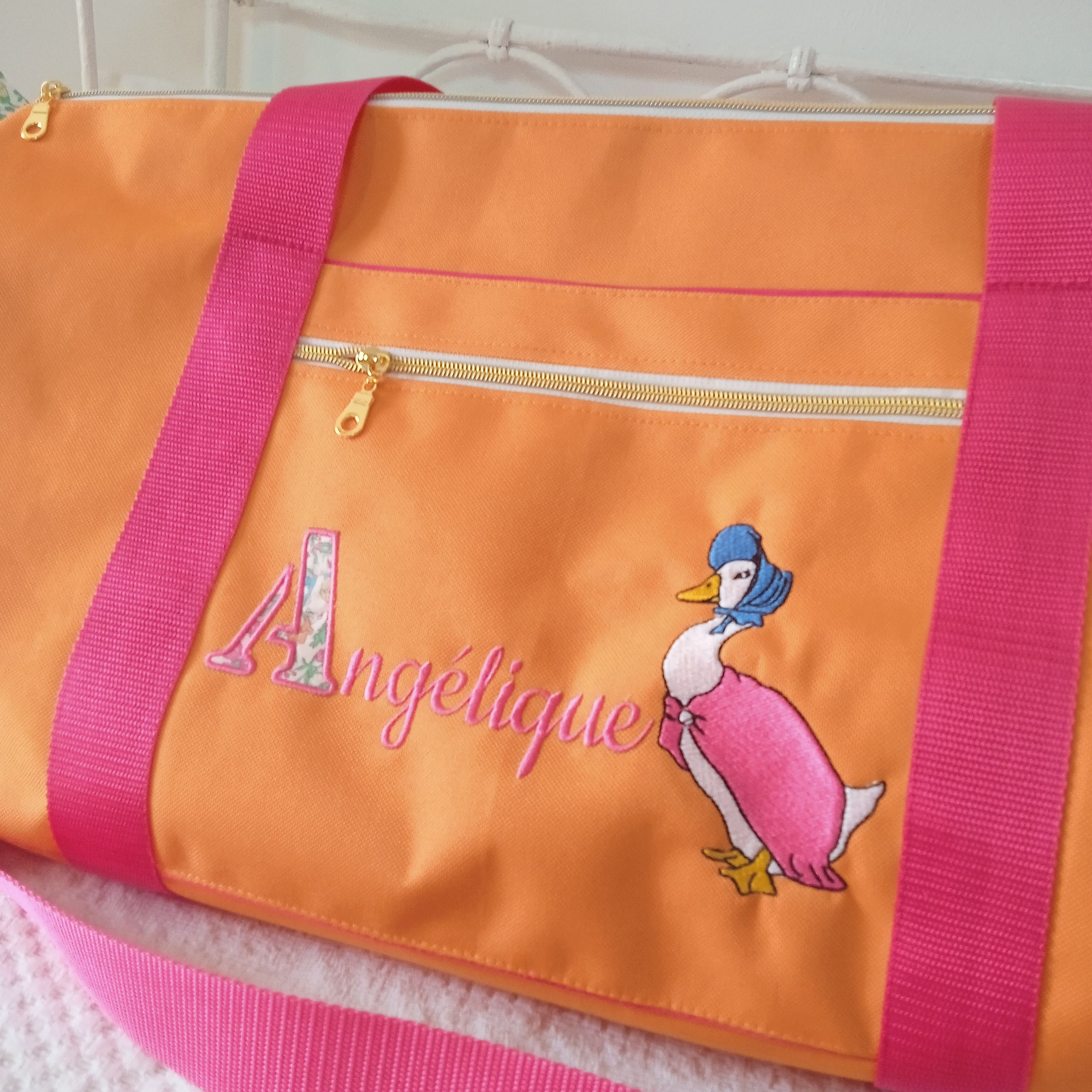 exemples de confections personnalisées avec broderie du prénom ANGELIQUE