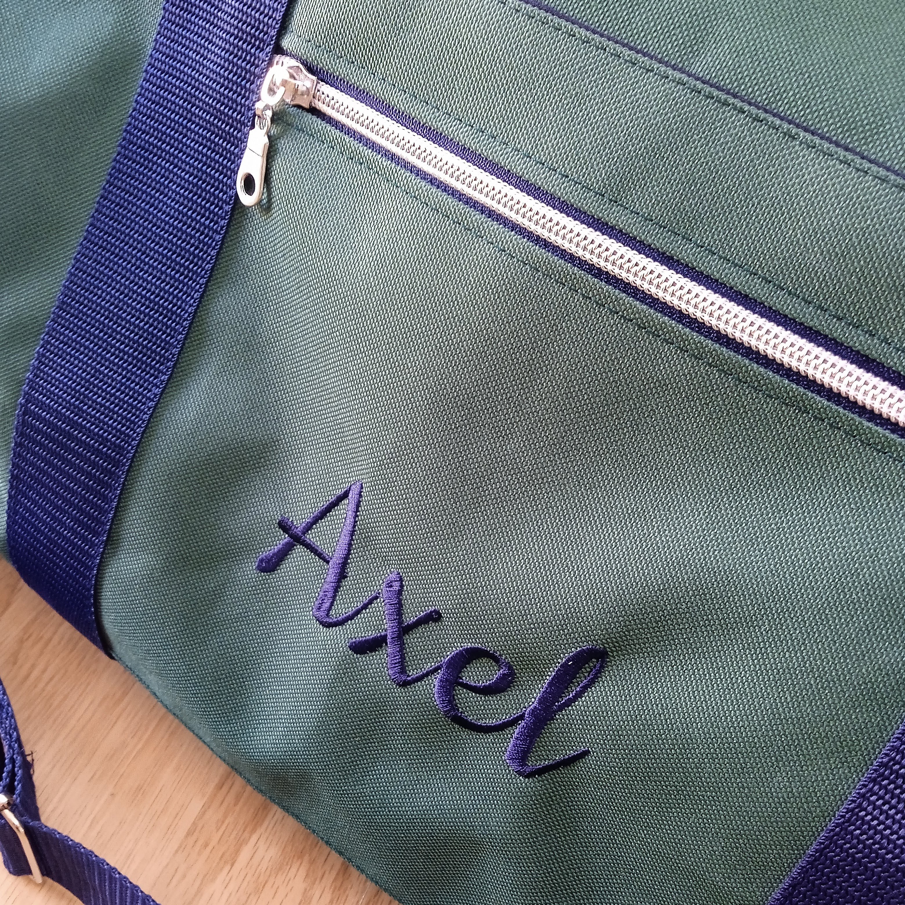 exemples de confections personnalisées avec broderie du prénom AXEL