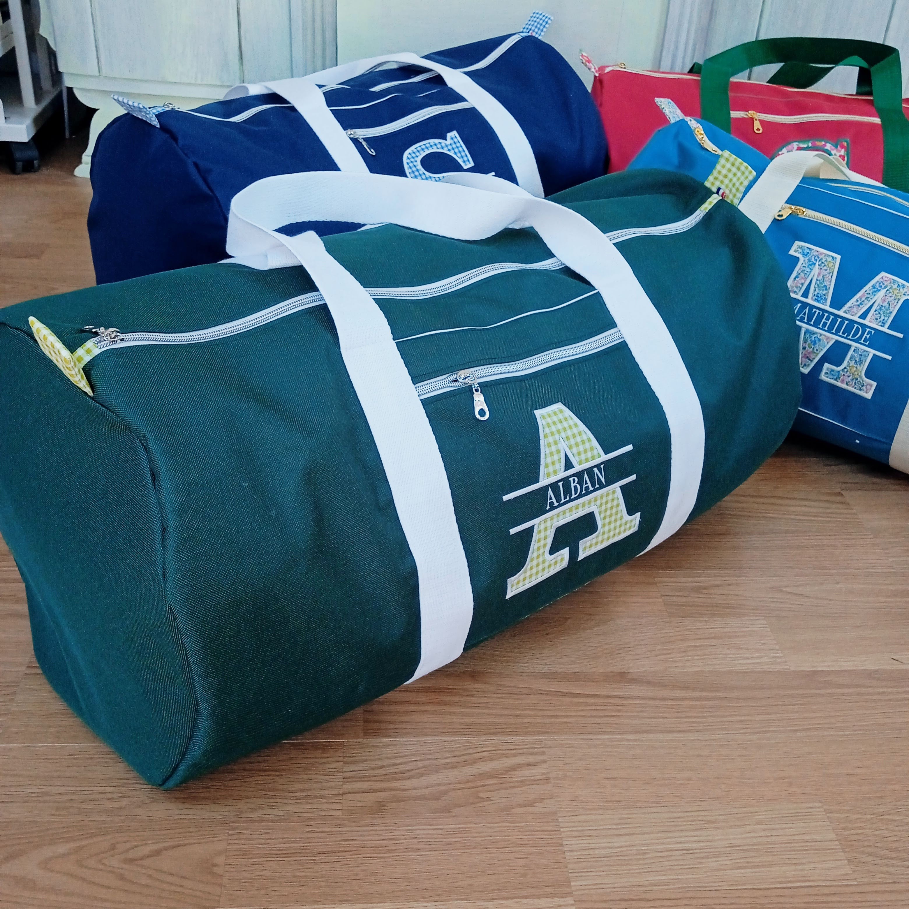 exemples de confections personnalisées avec broderie du prénom ALBAN