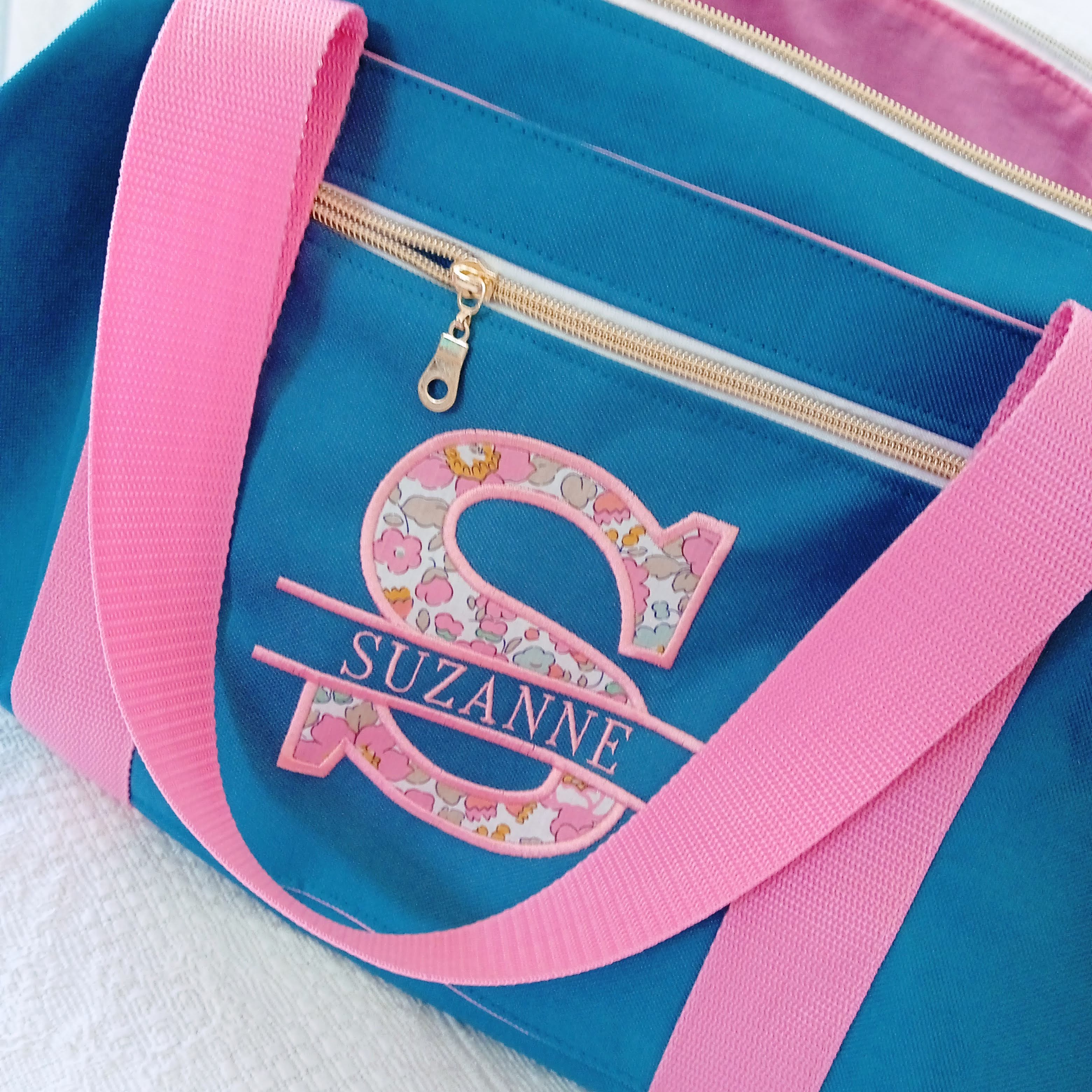 Prénom avec majuscule en appliqué de tissu : la première lettre est réalisée dans le tissu de votre choix pour un effet couture tout en douceur.