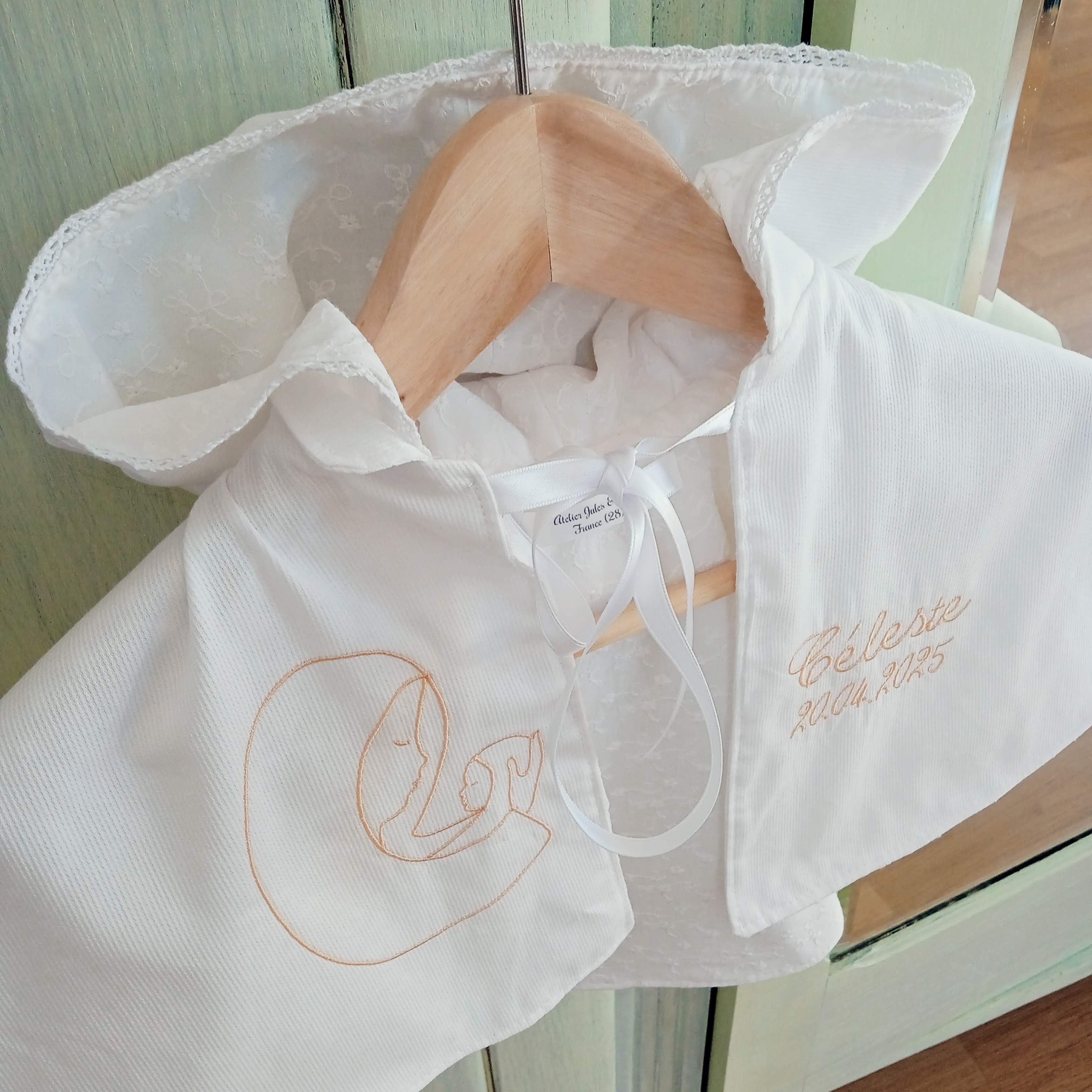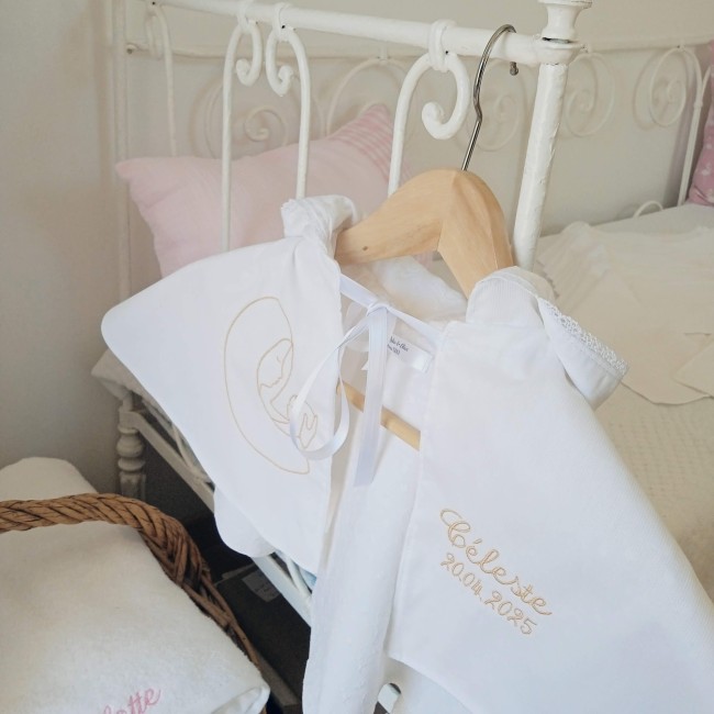 Je crée pour vous des articles personnalisés avec broderie du prénom, entièrement réalisés à la demande, pour offrir un cadeau unique et rempli de tendresse.