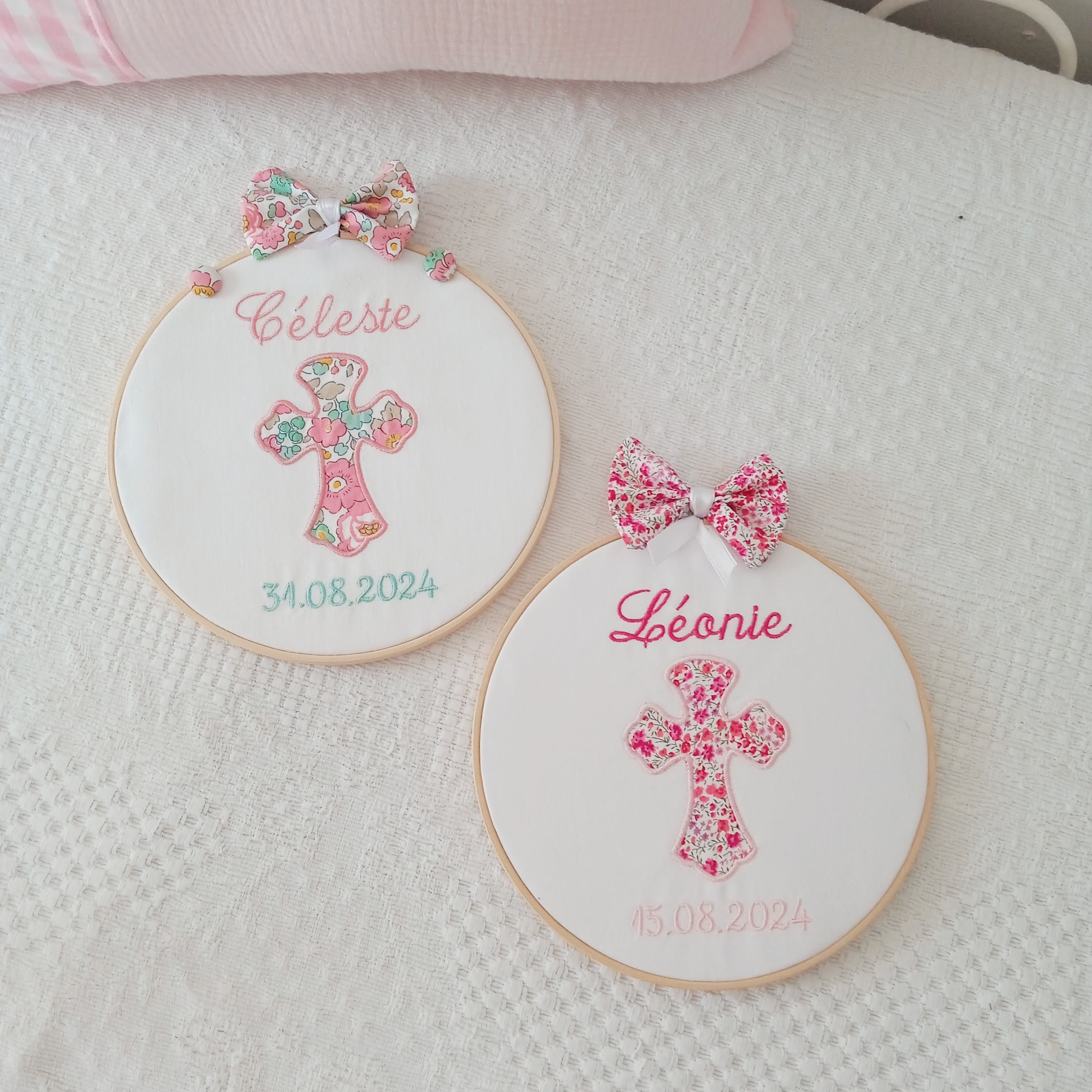 Chaque pièce est confectionnée par mes soins, dans mon atelier, spécialement pour vous, afin de transformer un simple article en souvenir précieux et personnalisé.