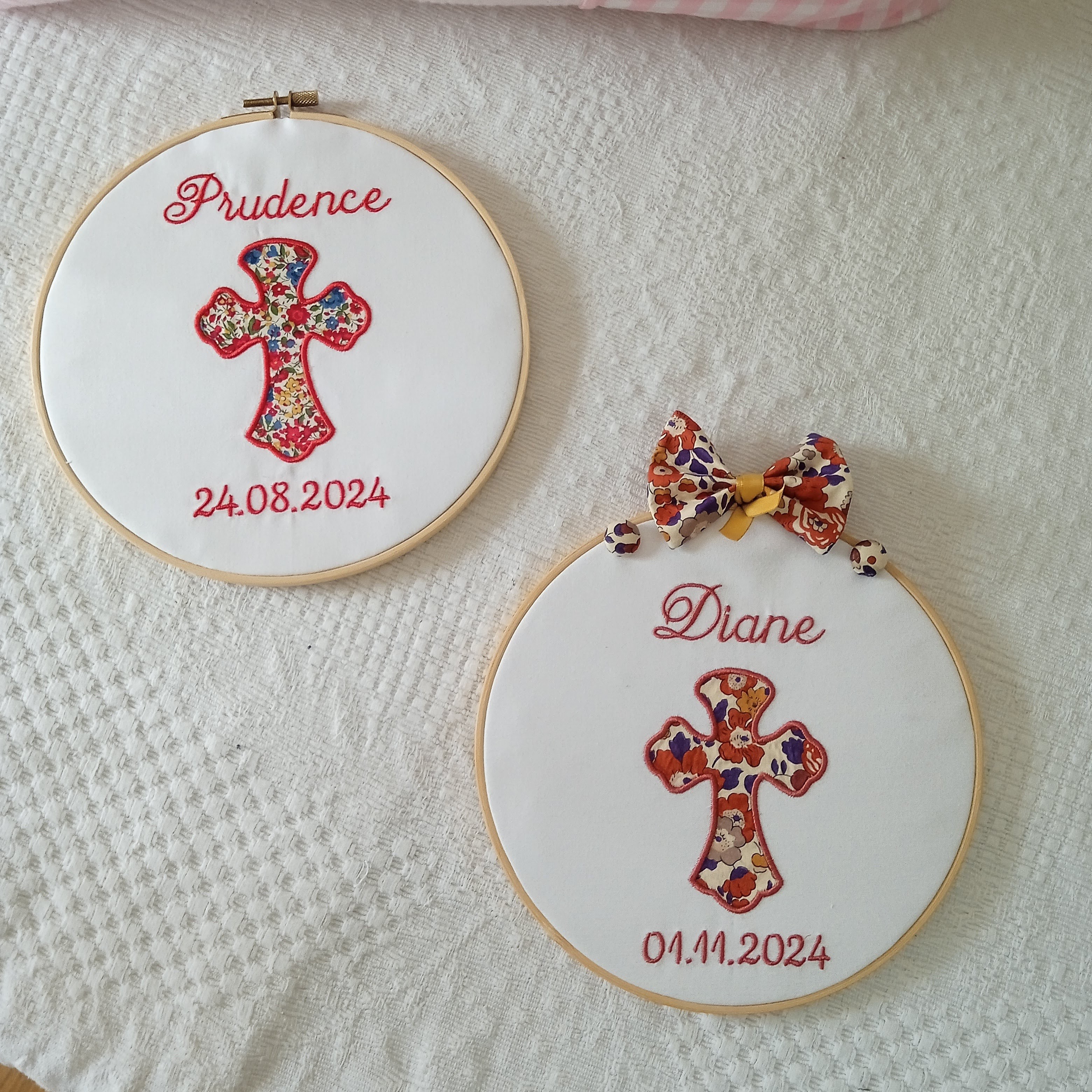 Chaque pièce est confectionnée par mes soins, dans mon atelier, spécialement pour vous, afin de transformer un simple article en souvenir précieux et personnalisé.