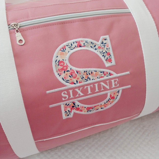 Prénom avec majuscule en appliqué de tissu : la première lettre est réalisée dans le tissu de votre choix pour un effet couture tout en douceur.