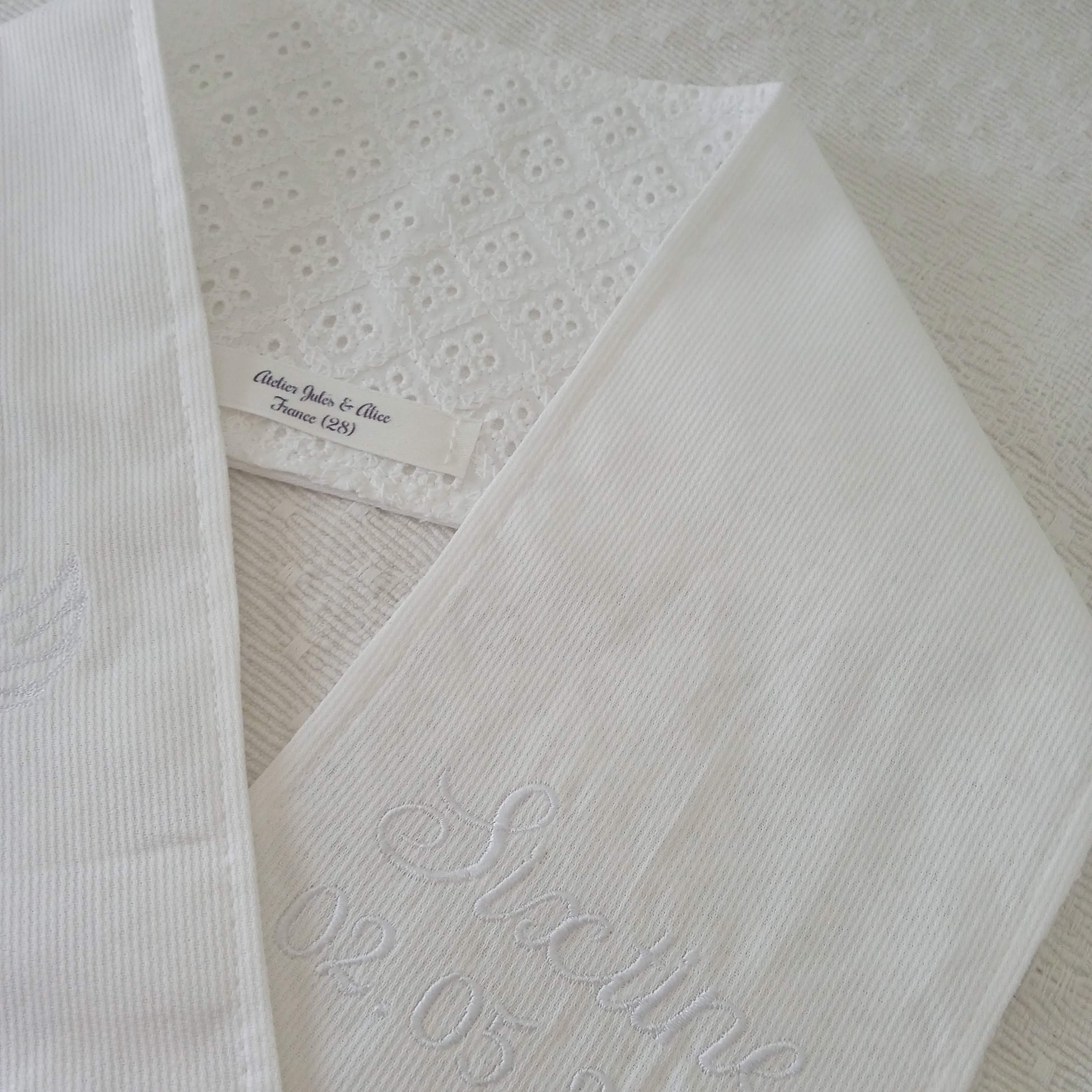 Je crée pour vous des articles personnalisés avec broderie du prénom, entièrement réalisés à la demande, pour offrir un cadeau unique et rempli de tendresse.