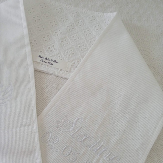 Cadeau naissance personnalisé – Article avec broderie prénom réalisée à la demande