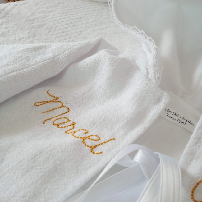 Cadeau naissance personnalisé – Article avec broderie prénom réalisée à la demande