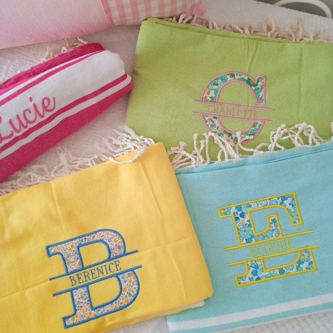 exemples de confections personnalisées avec broderie du prénom EUGENIE