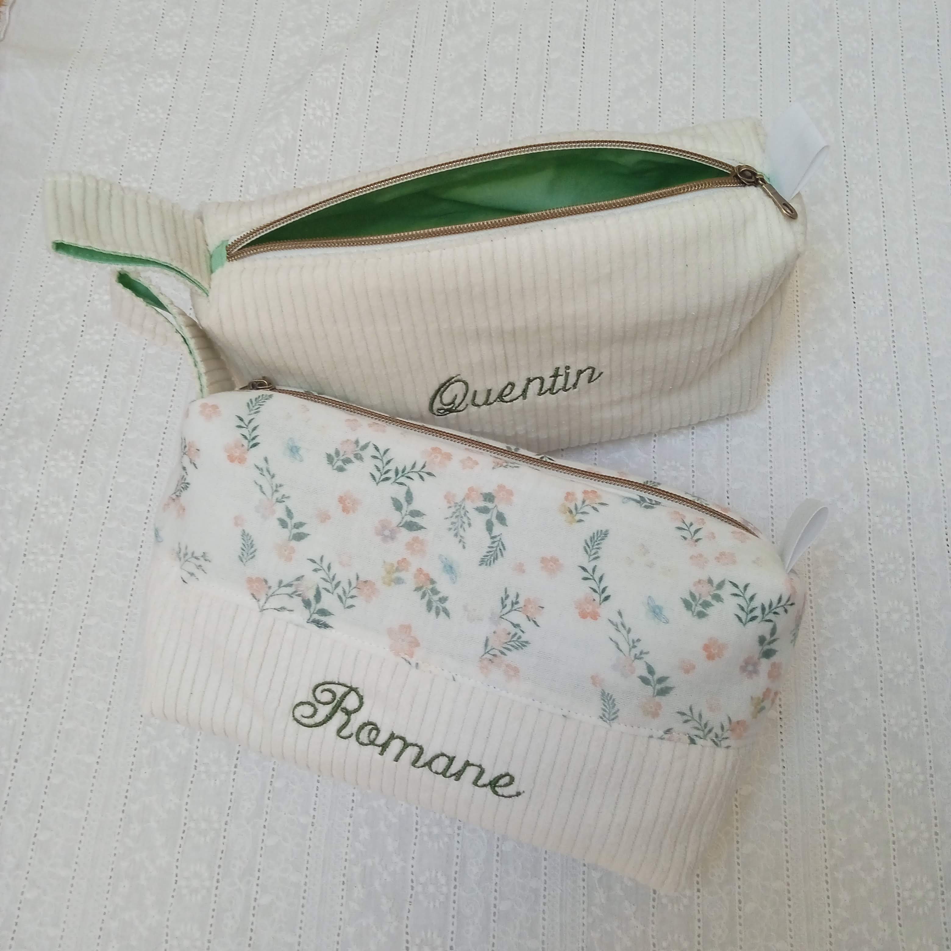 exemples de confections personnalisées avec broderie du prénom ROMANE