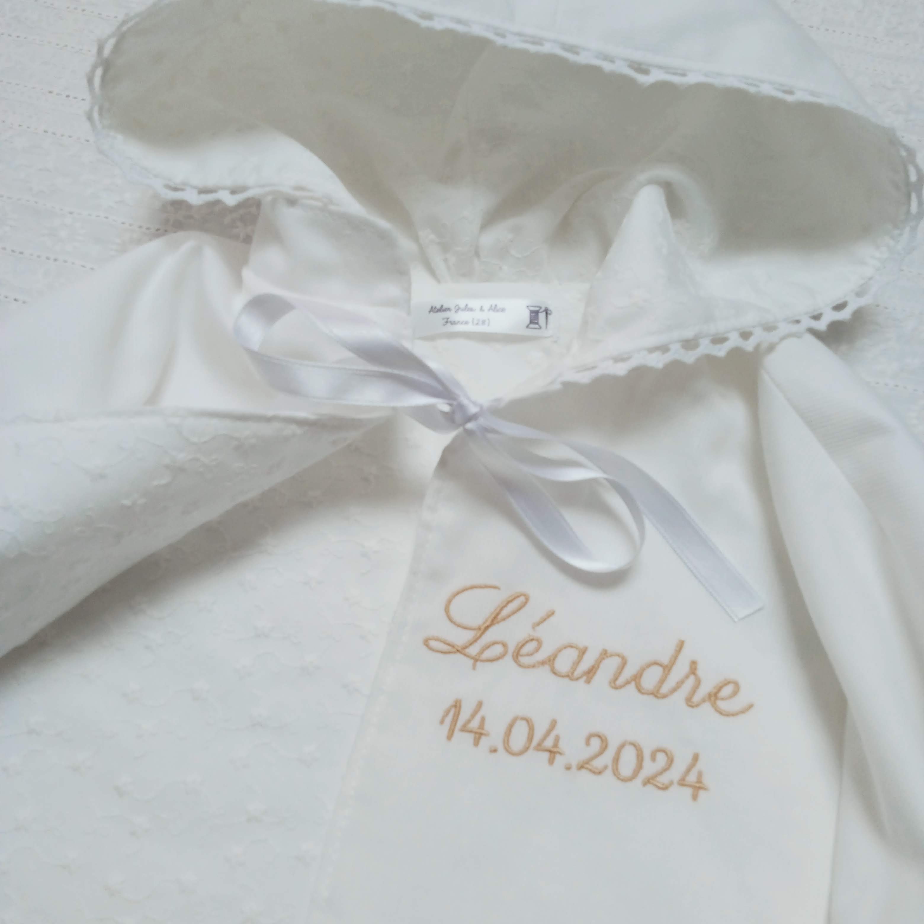 exemples de confections personnalisées avec broderie du prénom LEANDRE