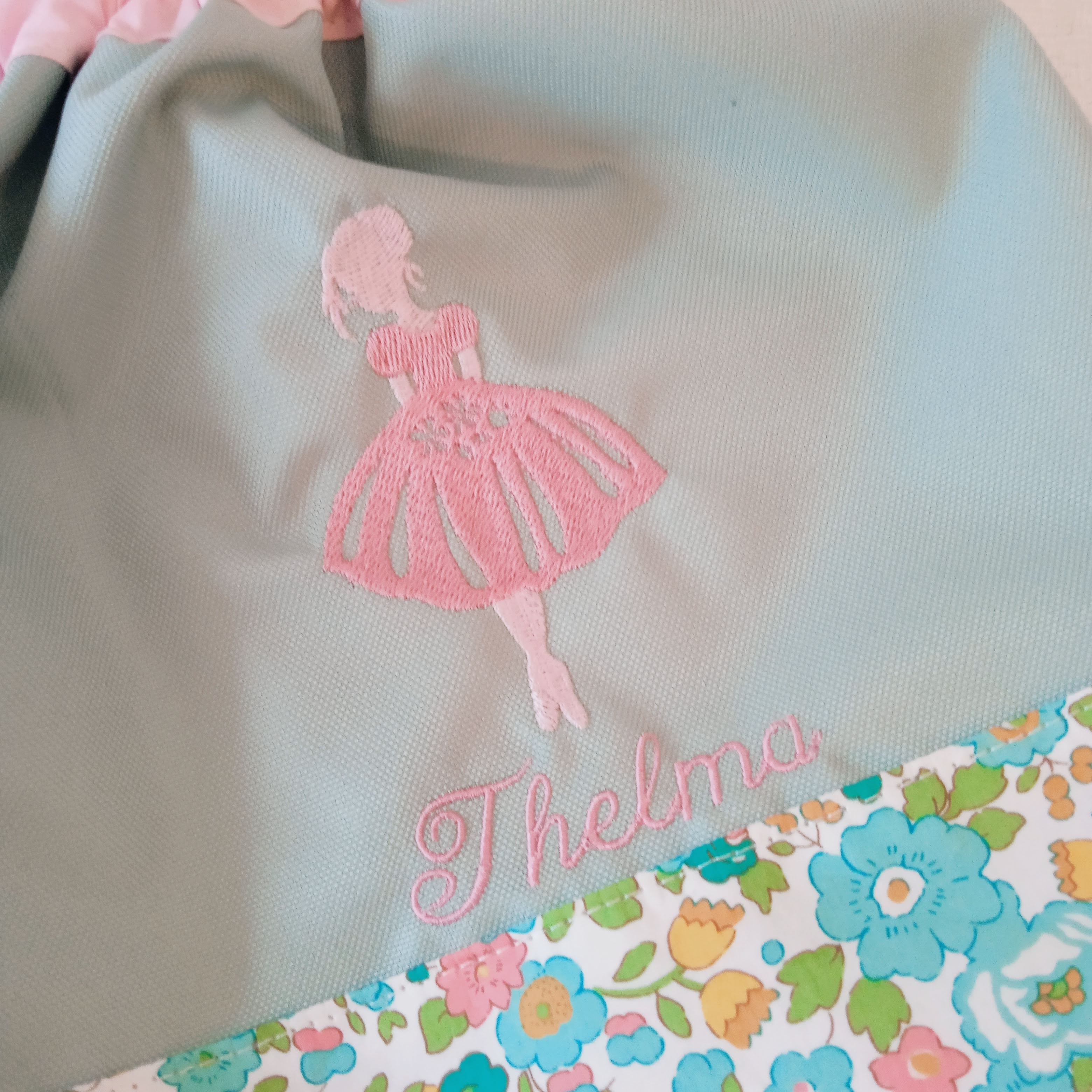 exemples de confections personnalisées avec broderie du prénom THELMA