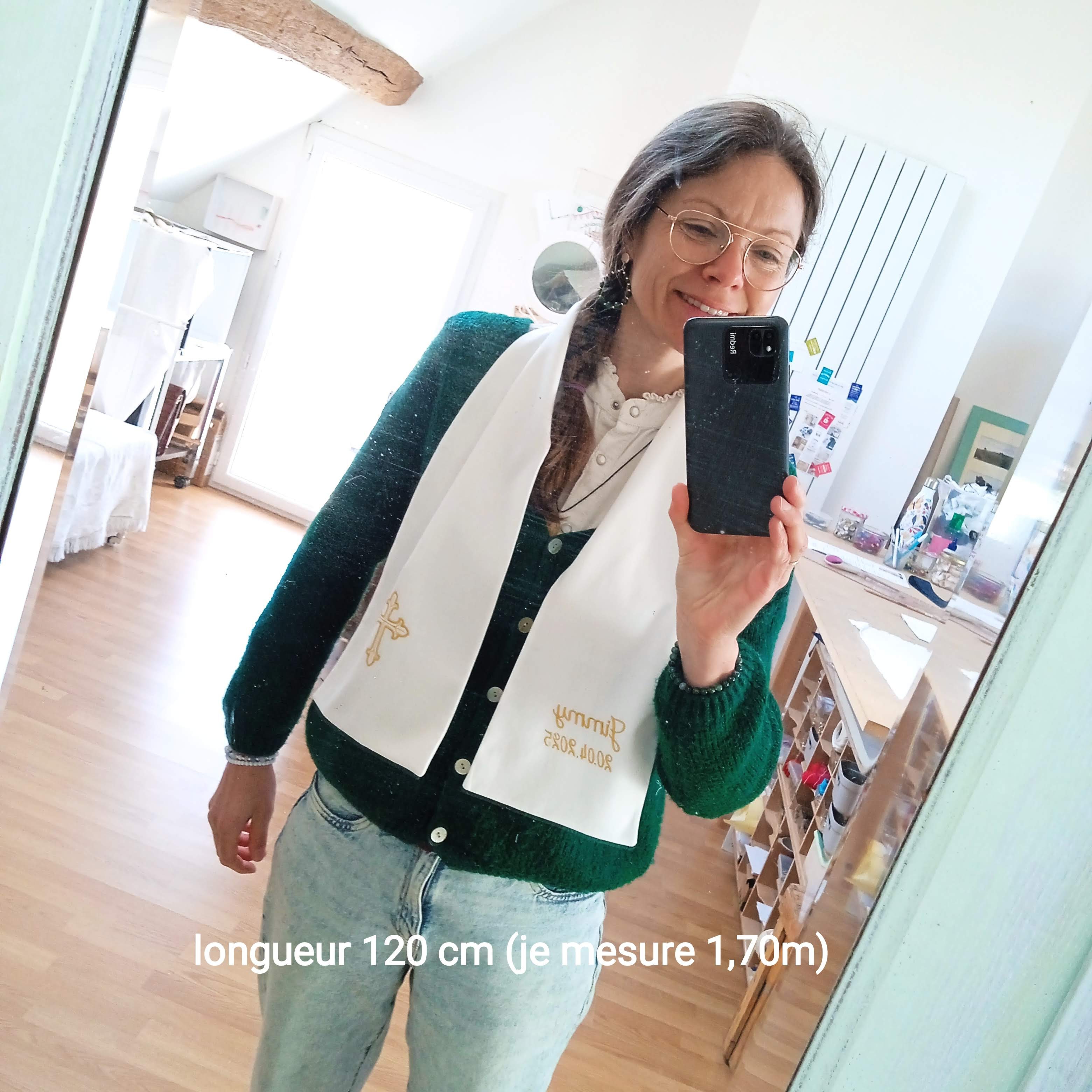 Je confectionne des écharpes de baptême personnalisées artisanales, adaptées aux tout-petits, enfants, adolescents et adultes, pour accompagner ce moment unique sur leur chemin de foi. Chaque écharpe de baptême brodée à la main est réalisée avec soin dans un tissu 100 % coton, piqué de coton milleraies blanc, doux et confortable, pour un rendu élégant, raffiné et intemporel.