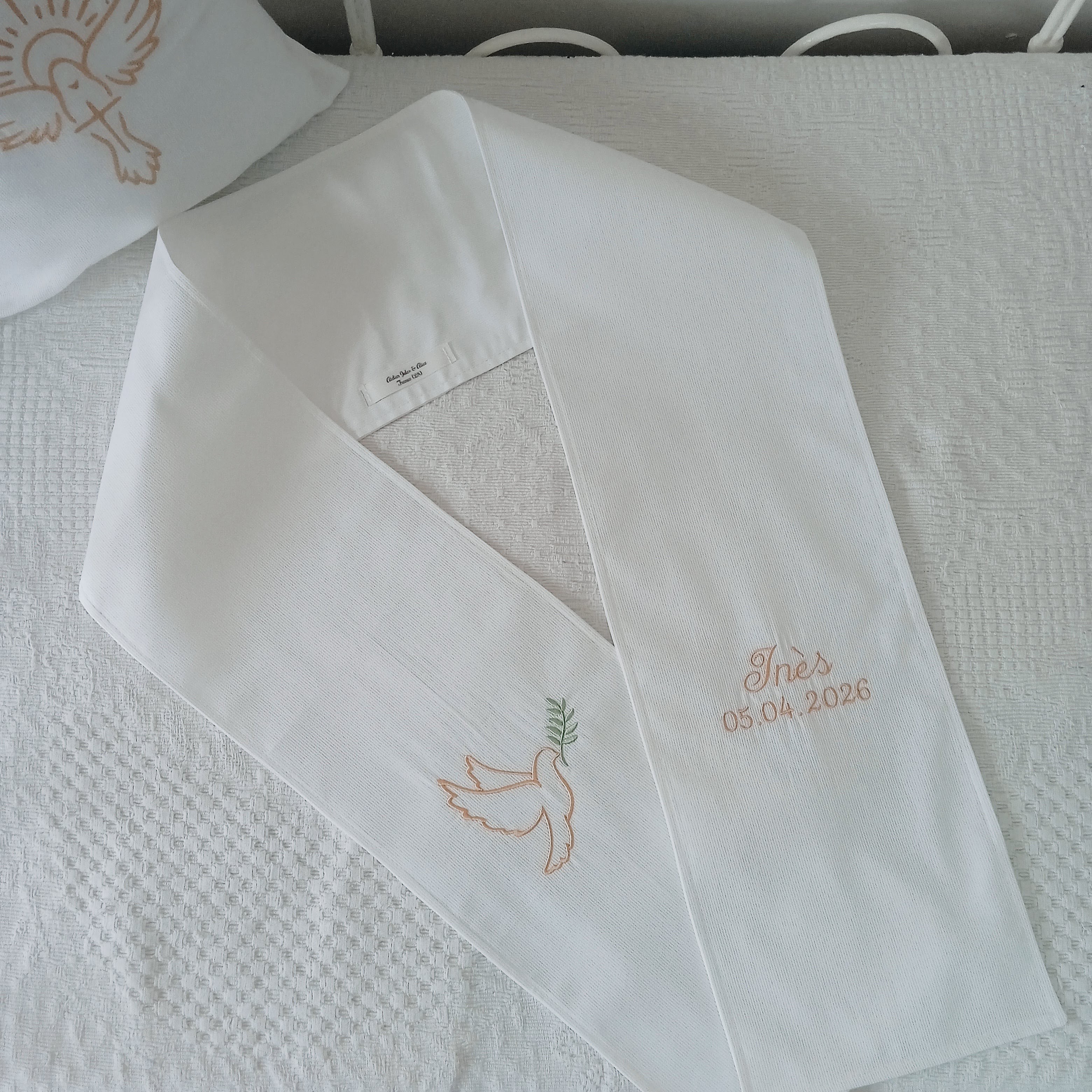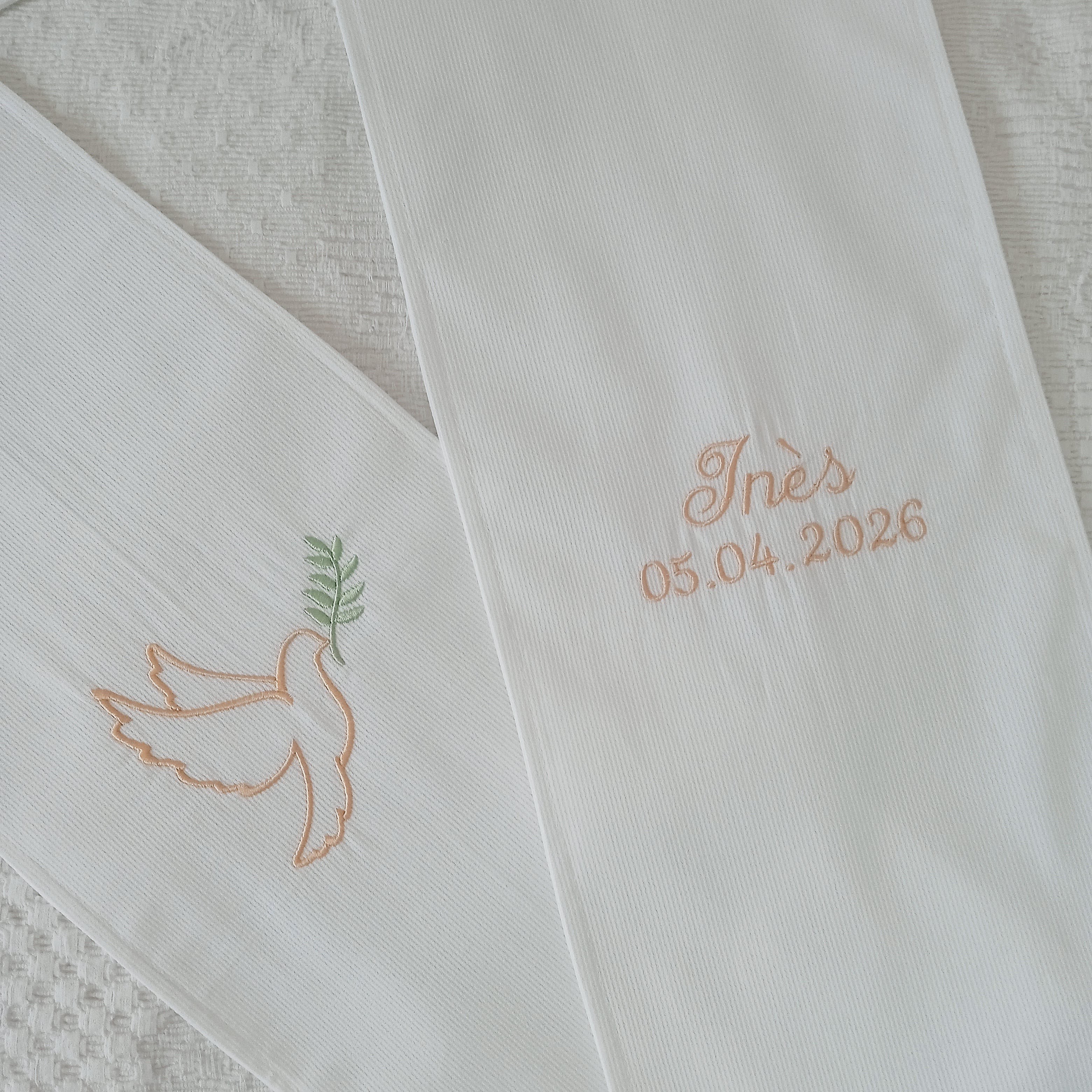 Chaque prénom raconte une histoire. Je prends soin de la mettre en valeur à travers une broderie soignée et harmonieuse.