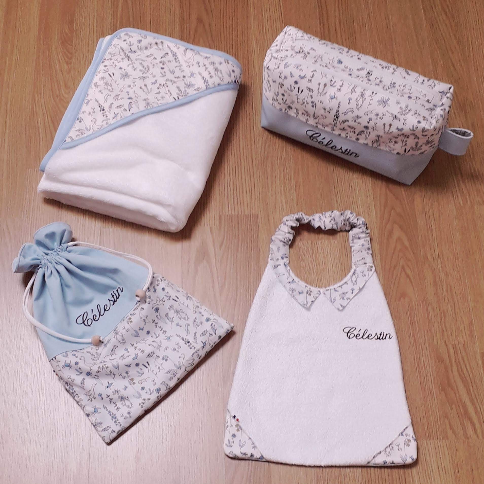 exemples de confections personnalisées avec broderie du prénom CELESTIN