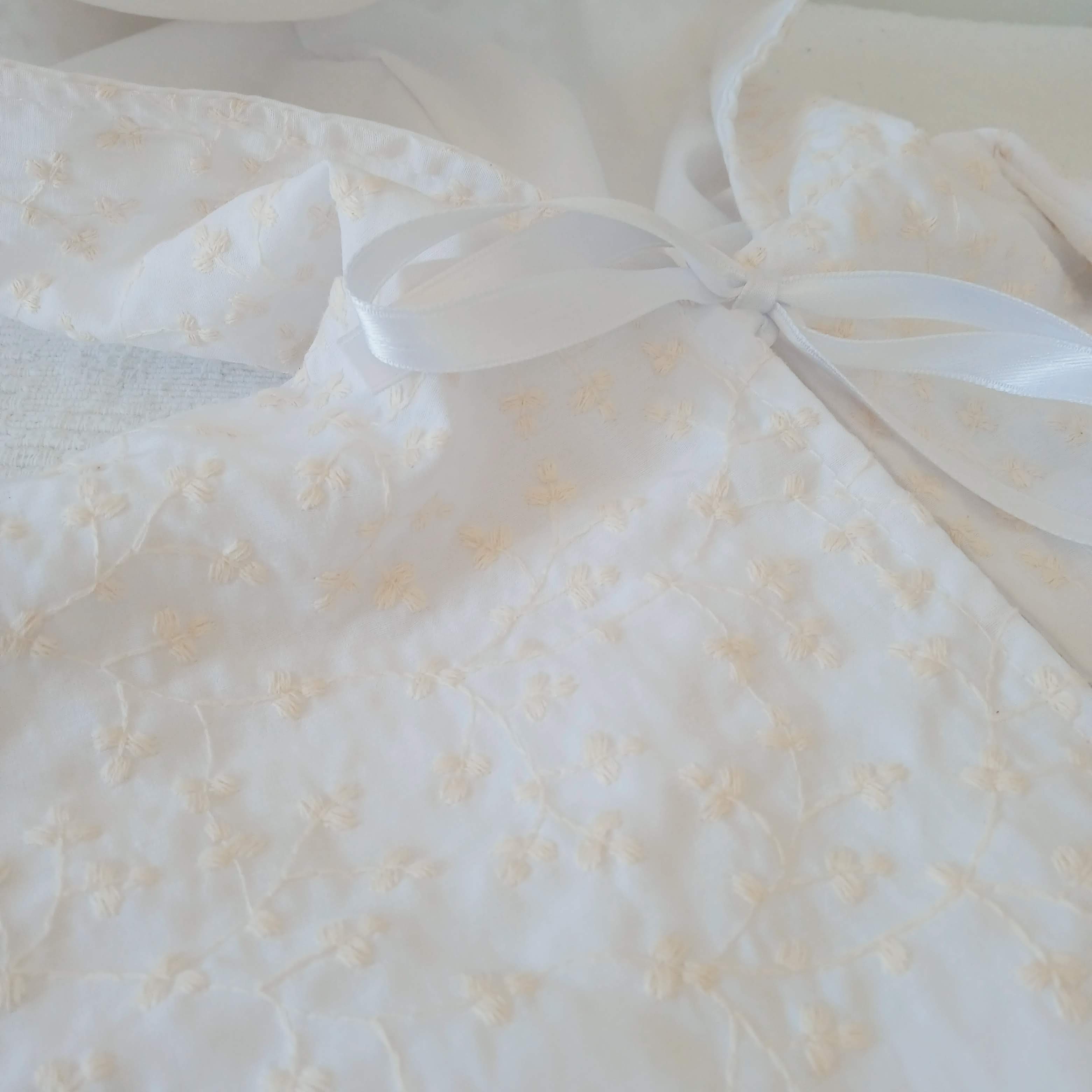 Extérieur en tissu blanc délicatement brodé de fleurettes ivoires (tissu 55% viscose et 45% Polyester, broderie en coton)