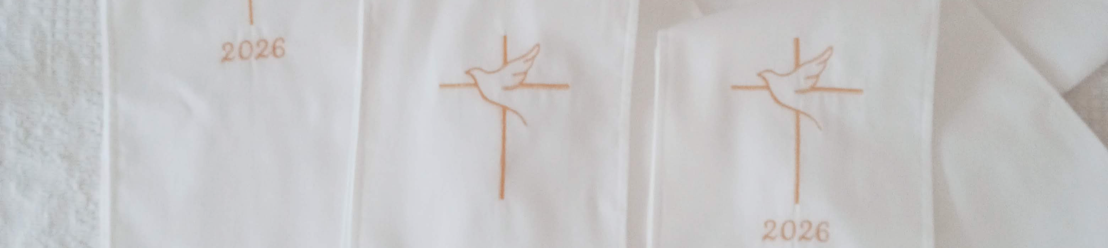 Je réalise chaque pièce avec soin afin de créer un souvenir unique et précieux du baptême, à conserver au fil des années. Sobres et symboliques, mes écharpes de baptême personnalisées conviennent aussi bien pour le baptême d’un adulte que pour celui d’un adolescent.